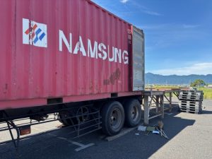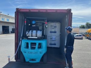 降ろした後は丁寧にコンテナ内を掃除して、作業完了です。