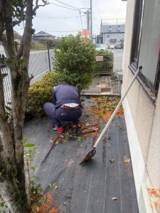 ほうきでハキハキですよ~~~ちり取りできちんとね~~