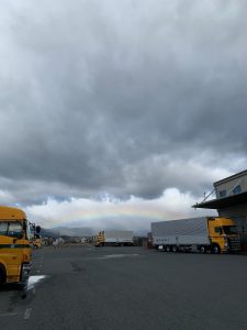 2月28日 2026年3月2日 ブログ 新着情報新着ブログ by 大同運送(株). 2月も終わりはや3月に突入致しました。 2/末土曜日にそそくさと事務所を後にしようと外に出たら 強風に小雨。身震いしながらびわ湖方面を見ると暗雲の下に ドッカ~ン と低い虹が横たわっていました。 低い雲と低い虹は私自身(62年間生きて・・・)記憶あるところ これで2回目です。 しばらくボーっと観てましたが、次第にフェイドアウトしました。 凄く得した気分の土曜でした。 今年も3月皆頑張っていきましょう‼ 前の記事
